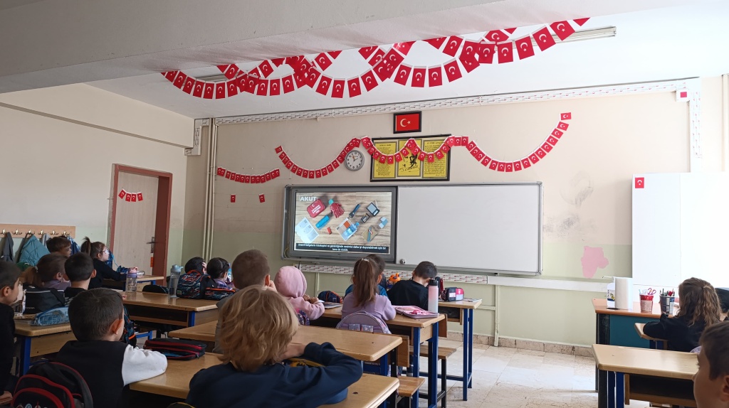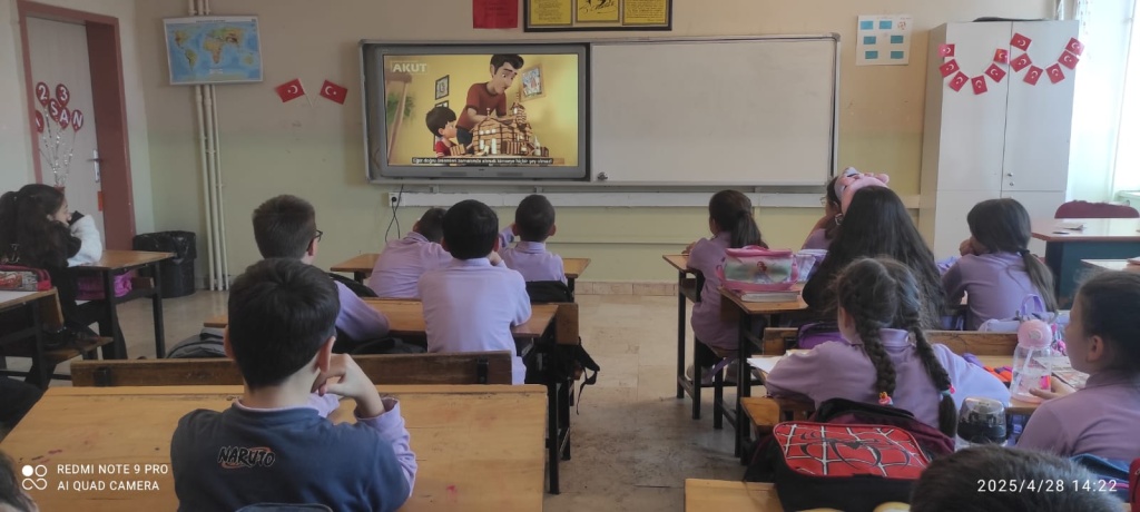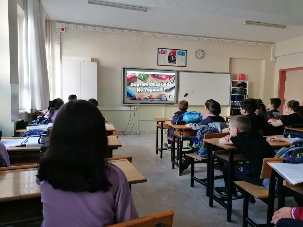 İlimizde 23 Nisan tarihinde gerçekleşen deprem nedeniyle eğitime verilen 2 günlük aranın ardından okulun ilk günü öğrencilerimize deprem farkındalığı ile ilgili videolar izletildi.